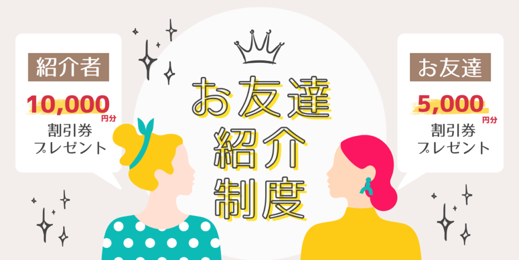 ご紹介者さま・ご友人どちらにも割引特典がつく「お友達紹介制度」を実施中です!